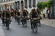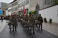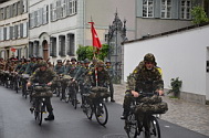 Bereitstellungsraum für das Rekrutenspiel, die historischen Radfahrformationen,