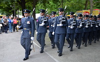 ziehen die Berittenen Artilleriemusiker kurz vorher rechts ab um via